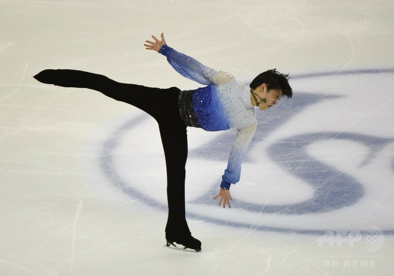 羽生は、日本で行われた昨年大会からの連覇を目指し、28日のフリースケーティング(FS)に臨む。(c)AFP/Neil CONNOR