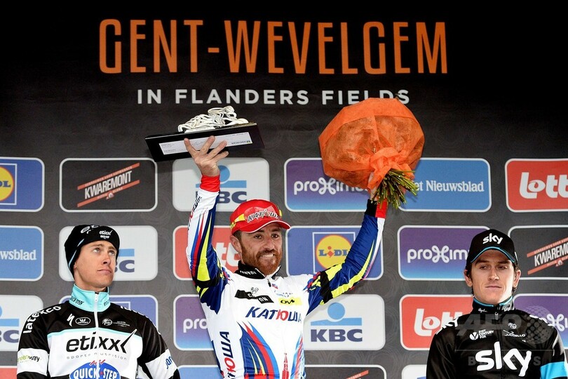 【3月30日 AFP】自転車ロードレース、第77回ヘント~ウェフェルヘム(Gent-Wevelgem 2015)は29日、ベルギー・ダインゼ(Deinze)からウェフェルヘム(Wevelgem)までの239キロメートルで行われ、カチューシャ・チーム(Katusha Team)のルカ・パオリーニ(Luca Paolini、イタリア)が優勝を飾った。