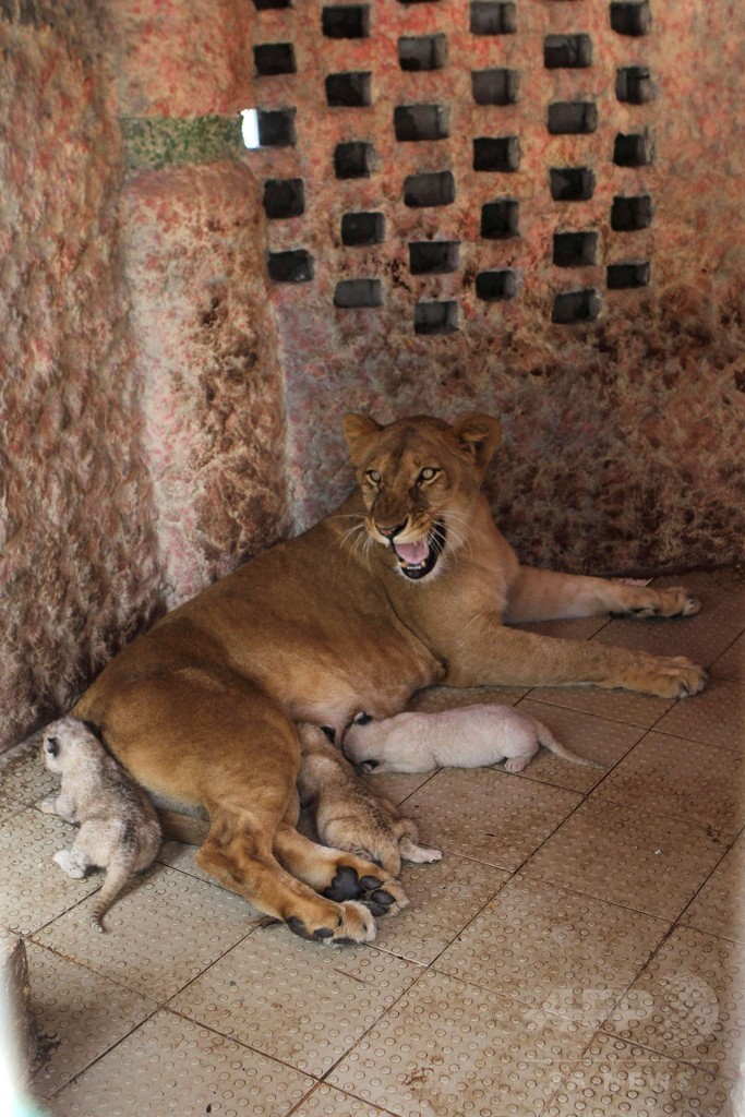【3月31日 AFP】パキスタン中部パンジャブ(Punjab)州ムルタン(Multan)市の資産家で動物愛好家のファザル・アッバス・マヒさん(Fazal Abbas Mahi)宅で飼われている雌ライオンのラニ(Rani)が、5つ子の赤ちゃんを出産した。9か月前にも2頭が生まれており、マヒさん宅で飼育されるライオンは計9頭となった。(c)AFP