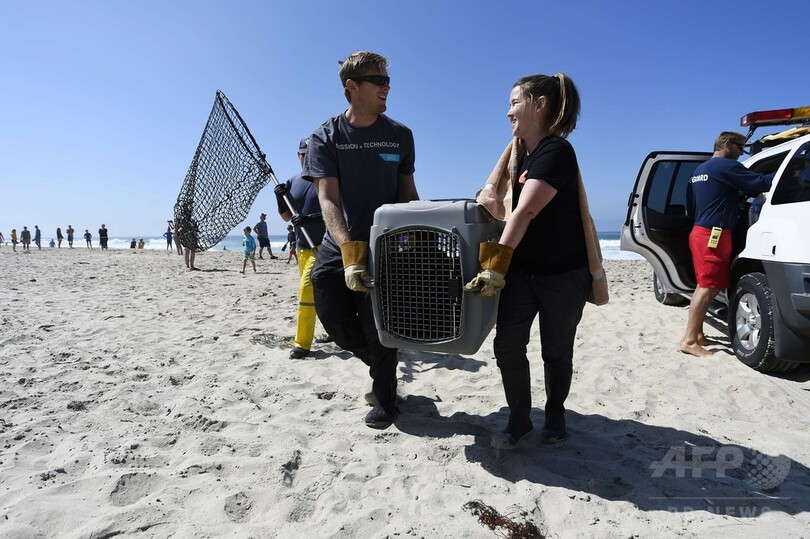 保護されたアシカたちは、同州ラグナビーチ(Laguna Beach)にある太平洋海洋哺乳類センター(Pacific Marine Mammal Center)に保護されている。(c)AFP