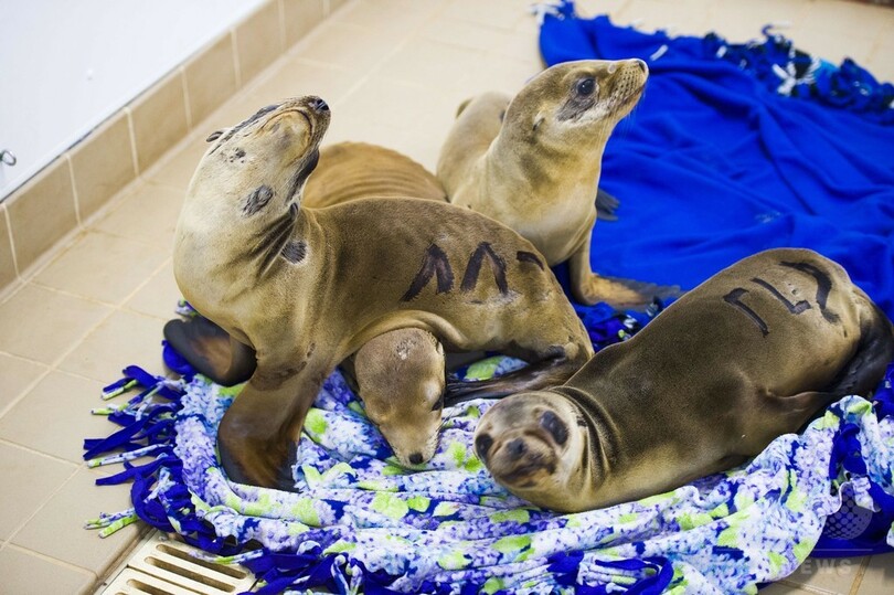保護されたアシカたちは、同州ラグナビーチ(Laguna Beach)にある太平洋海洋哺乳類センター(Pacific Marine Mammal Center)に保護されている。(c)AFP