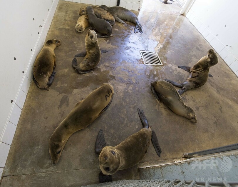 保護されたアシカたちは、同州ラグナビーチ(Laguna Beach)にある太平洋海洋哺乳類センター(Pacific Marine Mammal Center)に保護されている。(c)AFP