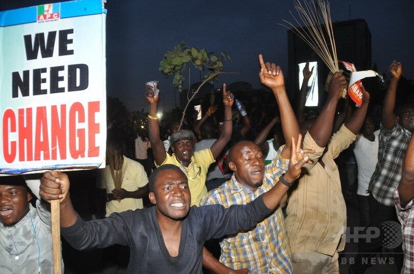【4月1日 AFP】(一部更新)ナイジェリアで3月28、29の両日投票が行われた大統領選挙で、野党・全革新会議(All Progressives Congress、APC)のムハンマド・ブハリ(Muhammadu Buhari)元最高軍事評議会議長(72)が同月31日、歴史的な勝利を果たした。喜んだブハリ氏の支持者ら数千人が街頭に出て、「チェンジ、チェンジ」と高らかに声を合わせた。