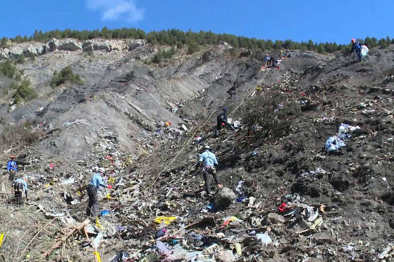 仏当局者はAFPに対し、「現場に残された遺体はもうない。20人からなる山岳捜索隊が明日(4月1日)、犠牲者の所持品などの回収にあたるチームと共に現場に入る」と明らかにすると共に、チームは現在も第2の「ブラックボックス」であるフライトレコーダー(飛行記録装置)の捜索を続けていると述べた。(c)AFP