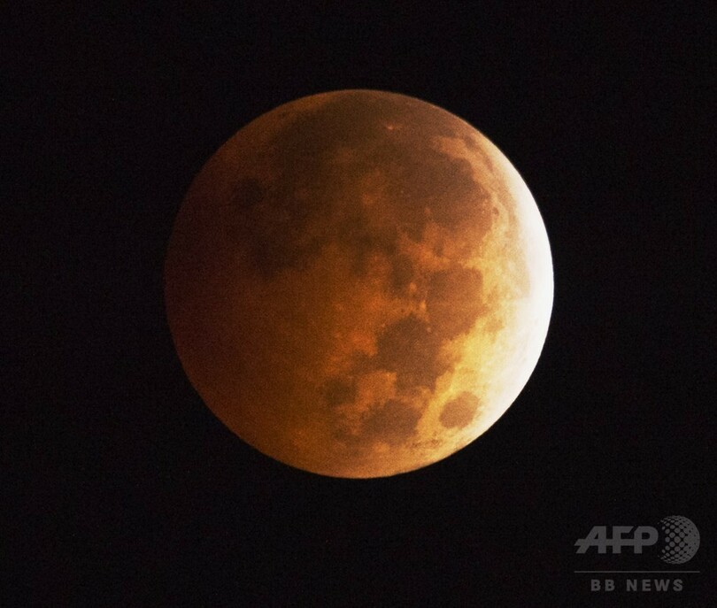 4日の月食は、2014~2015年の2年間にそれぞれ約6か月間隔で4回発生する皆既月食の3回目に当たる。前回の皆既月食は昨年10月8日に起きた。今回の次の皆既月食は9月27日。(c)AFP