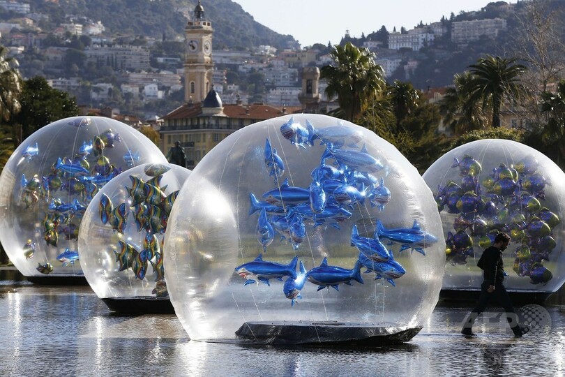 ニュース ライフ 宙を泳ぐ魚たち?仏ニース 2015年4月3日 16:17 発信地:ニース/フランス [ ヨーロッパ フランス ] このニュースをシェア ‹ › ❮ 1/6 ❯ 仏ニースで、噴水に設置されたサメなどの風船がいれられたビニール製の球体(2015年4月1日撮影)。(c)AFP/VALERY HACHE 画像作成中 ! 【4月3日 AFP】仏ニース(Nice)にある噴水に、サメなどの風船が入れられたビニール製の球体が登場した。(c)AFP ライフ 一覧へ> メディア・報道関係・法人の方向け 写真・動画 購入のお問合せ>