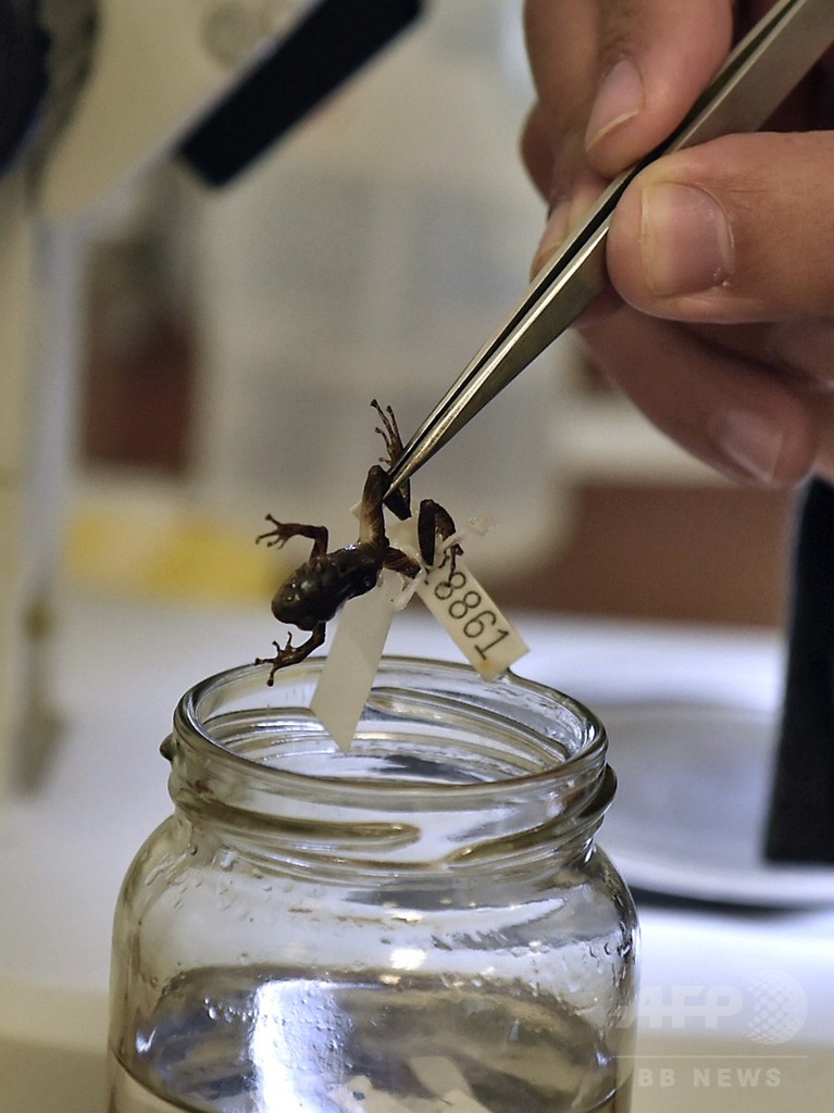 また論文は、季節を通して皮膚の質感を変えるカエルはこれまでにも知られていたが、わずか330秒で変えてしまうケースはなかったと指摘している。(c)AFP/Santiago PIEDRA SILVA