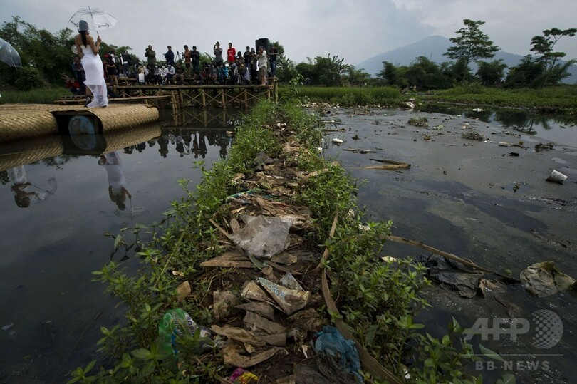 チタルム川は、米国の環境保護団体ブラックスミス研究所(Blacksmith Institute)とスイスの国際NGO「グリーンクロス(Green Cross)」が2013年に発表した「世界で最も汚染された地域」のトップ10に選ばれている。(c)AFP