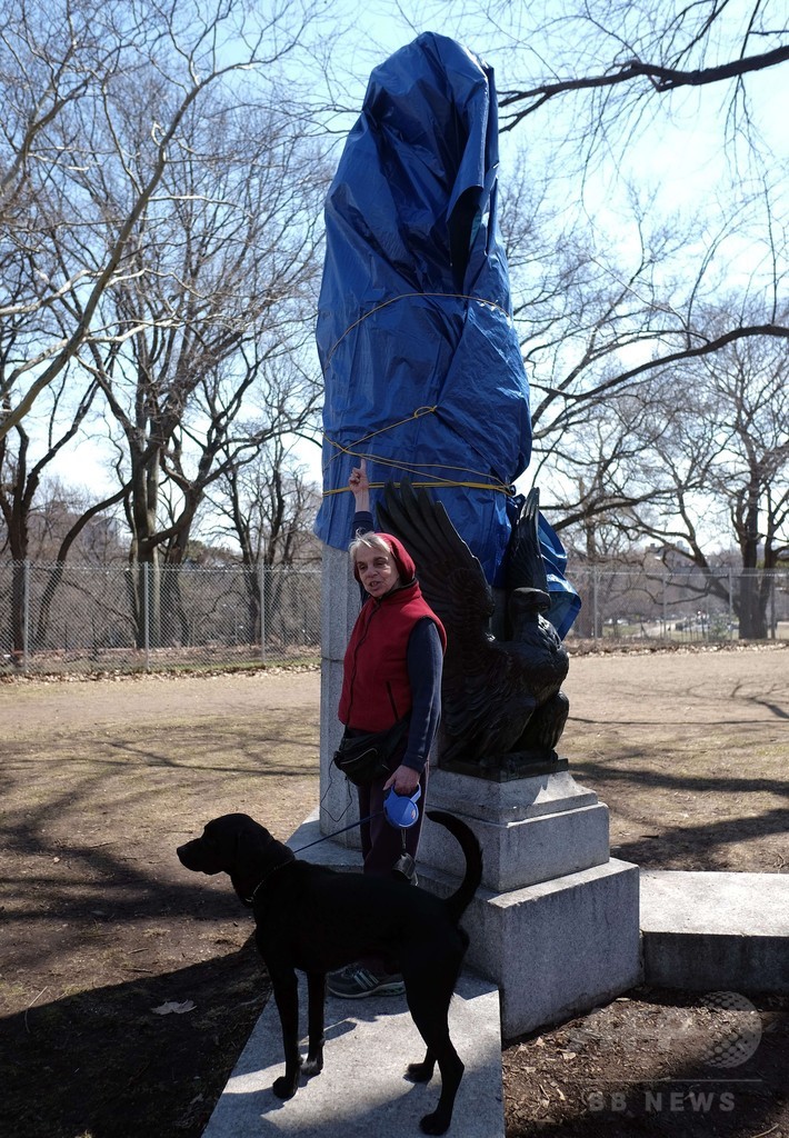 このブロンズ風の像は、同市ブルックリン(Brooklyn)のフォートグリーンパーク(Fort Greene Park)内にある独立戦争で戦死した兵士らの慰霊碑の上に置かれた。慰霊碑の下部には、「スノーデン」の名前が取り付けられていた。