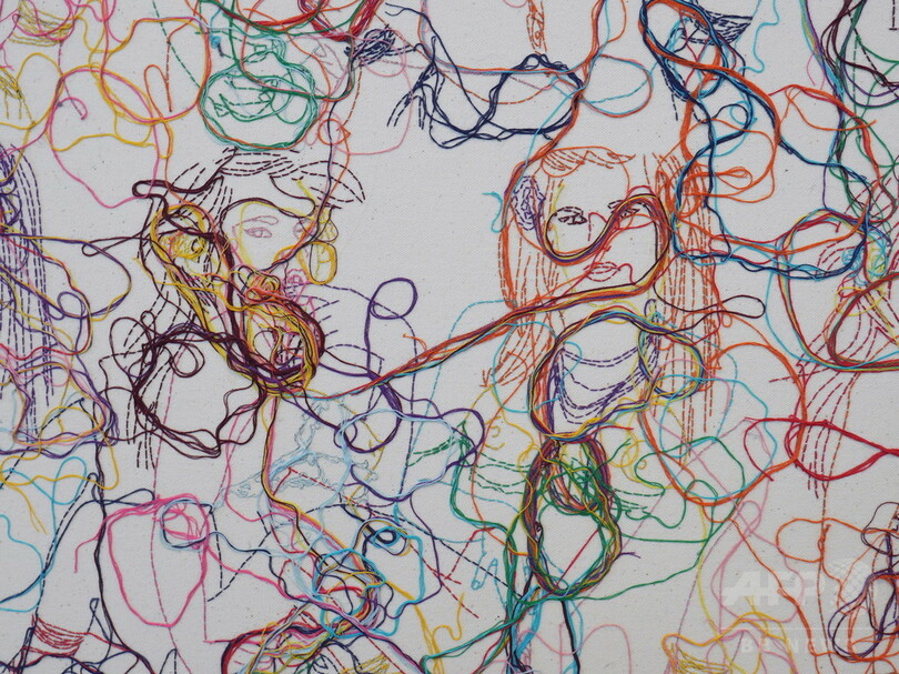 フランス語で「赤い糸」を意味する同展では、「糸」を使用したアーティストらの作品を展示。東京のエキシビションにはガーダ・アメール氏(Ghada Amer)、ハンス・オプ・デ・ベーク氏(Hans Op de Beeck)、マイケル・レデッカー氏(Michael Raedecker)、タティアナ・トゥルヴェ氏(Tatiana Trouvé)の4名の作家が参加している。