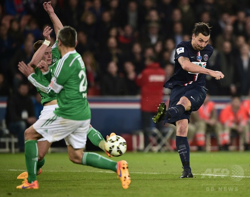 PSGはズラタン・イブラヒモビッチ(Zlatan Ibrahimovic)のハットトリックなどで本拠地パルク・デ・プランス(Parc des Princes)で勝利し、前人未到の4冠達成へ可能性をつないだ。