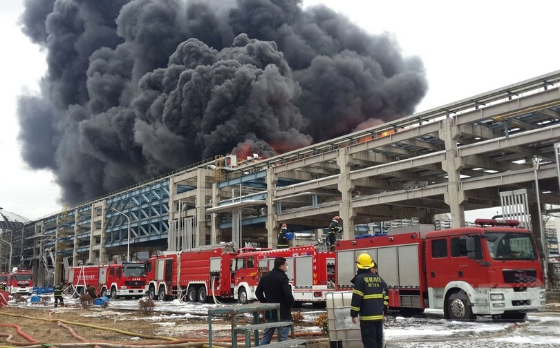 ニュース 社会 中国の化学工場爆発、発生から2日も消火作業続く 2015年4月8日 17:41 発信地:北京/中国 [ 中国・台湾 中国 ] このニュースをシェア ‹ › ❮ 1/6 ❯ 中国・福建省ショウ州で、爆発を起こし炎上を続ける化学工場と、消火作業に当たる消防隊(2015年4月8日撮影)。(c)AFP 画像作成中 ! 【4月8日 AFP】中国南東部・福建(Fujian)省ショウ州(Zhangzhou)で8日、化学工場で6日夜に起きた爆発に伴って発生した火災が続いている。 国営メディアの7日の報道によると、800人以上の消防隊員が消火作業に当たっている。 またポリエステル素材に使われる可燃性物質のパラキシレンを製造するこの工場では、今回を含め、過去約2年で2度事故が起きているという。(c)AFP 社会 一覧へ> メディア・報道関係・法人の方向け 写真・動画 購入のお問合せ>