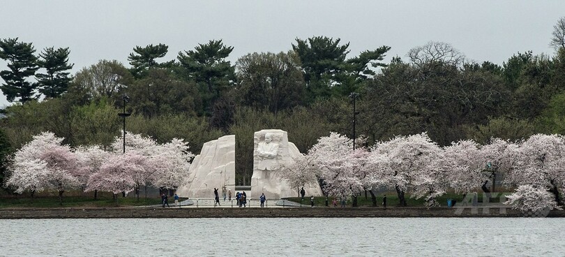 同公園に面するタイダルベイスン(Tidal Basin)の周りには、1912年に友好の印として日本から寄贈された桜があり、同日は桜の並木道を散歩したり写真撮影をしたりする人々の姿が見られた。(c)AFP