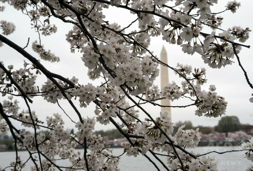 【4月9日 AFP】米首都ワシントン(Washington D.C.)にある国立公園ナショナルモール(National Mall)周辺の桜が見ごろを迎えている。寒さの影響から、例年よりも少し遅めという。