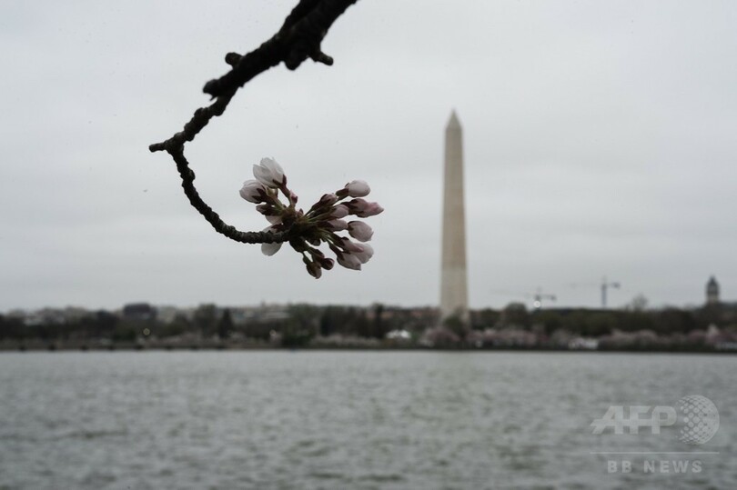 【4月9日 AFP】米首都ワシントン(Washington D.C.)にある国立公園ナショナルモール(National Mall)周辺の桜が見ごろを迎えている。寒さの影響から、例年よりも少し遅めという。