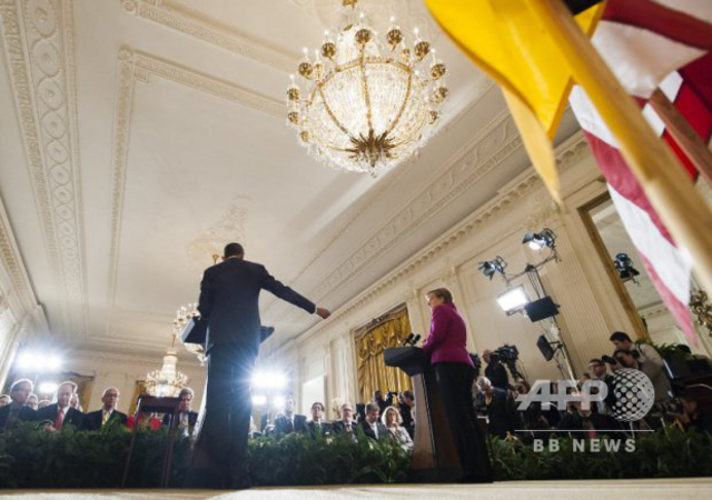 2月のドイツのアンゲラ・メルケル(Angela Merkel)首相とバラク・オバマ(Barack Obama)大統領の共同会見では、背後からのアングルを撮影するために壇上の後ろに小さな三脚で1台カメラを設置し、私は2人の前方で別のカメラを構えた。こうすることで、同じ瞬間をまったく違う視点から撮影することができた。