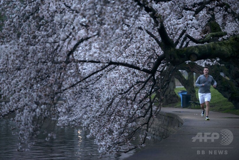 同公園に面するタイダルベイスン(Tidal Basin)周辺には、1912年に友好の印として日本から寄贈された桜が並ぶ。(c)AFP