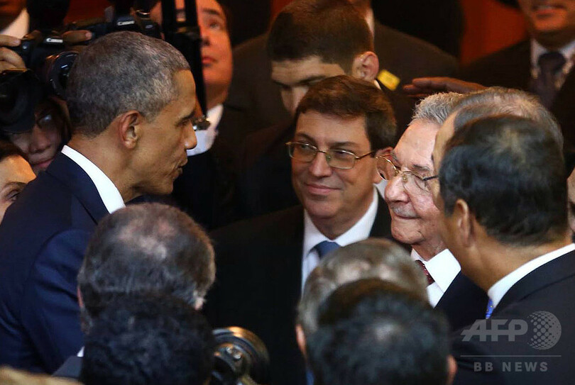 【4月11日 AFP】米国のバラク・オバマ(Barack Obama)大統領とキューバのラウル・カストロ(Raul Castro)国家評議会議長は10日、パナマで開催された米州首脳会議(Summit of the Americas)に参加した。両首脳は握手を交わして互いに近い席に座り、数十年にわたって対立してきた両国関係は新たな段階を迎えた。