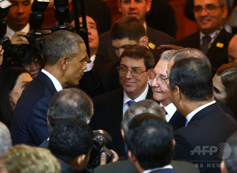 【4月11日 AFP】米国のバラク・オバマ(Barack Obama)大統領とキューバのラウル・カストロ(Raul Castro)国家評議会議長は10日、パナマで開催された米州首脳会議(Summit of the Americas)に参加した。両首脳は握手を交わして互いに近い席に座り、数十年にわたって対立してきた両国関係は新たな段階を迎えた。