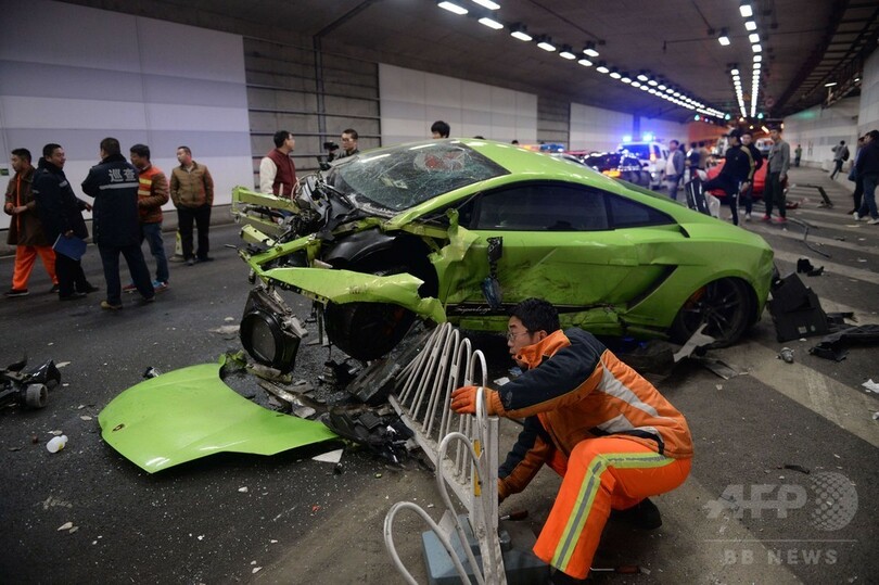 中国では2012年、当時の胡錦濤(Hu Jintao)国家主席の側近だった令計画(Ling Jihua)氏の息子が、女性2人を乗せて運転していたフェラーリで交通事故死するなど、若者が運転する高級車による事故が問題化している。今回の事故後、インターネット上には、車両前部が粉々になったランボルギーニや損傷した赤いフェラーリ、その他、複数の高級車の写真が出回った。またマイクロブログの新浪微博(Sina Weibo)には「彼らの名前は?父親は誰だ?」といった書き込みが投稿された。(c)AFP