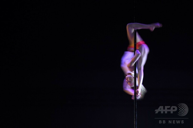【4月13日 AFP】中国・北京(Beijing)で12日、2015年ポールダンス世界選手権(2015 World Pole Dance Championships)の決勝戦が行われ、世界各国の選手たちによる白熱の演技が披露された。(c)AFP