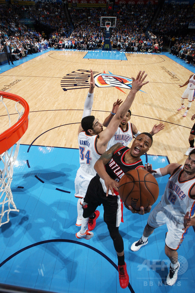 【4月14日 AFP】14-15NBAは13日、各地で試合が行われ、ラッセル・ウエストブルック(Russell Westbrook)が36得点11リバウンドの活躍をみせたオクラホマシティ・サンダー(Oklahoma City Thunder)は101-90でポートランド・トレイルブレイザーズ(Portland Trail Blazers)に勝利した。