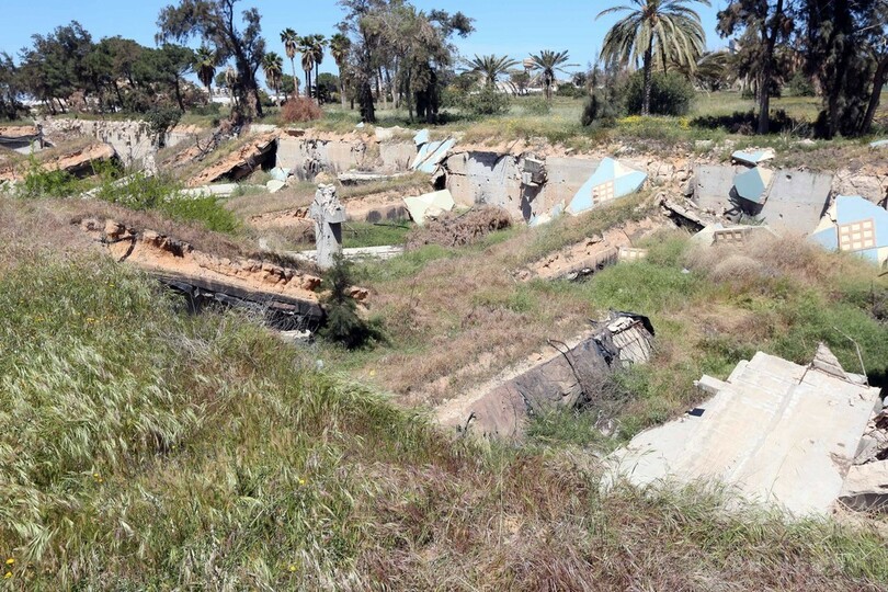 2011年の政変で政権が転覆するまで、カダフィ大佐は40年以上にわたってこの広大な敷地に立つ邸宅で暮らしていた。現在では荒廃し、ゴミ捨て場やペット市場として利用されている。(c)AFP
