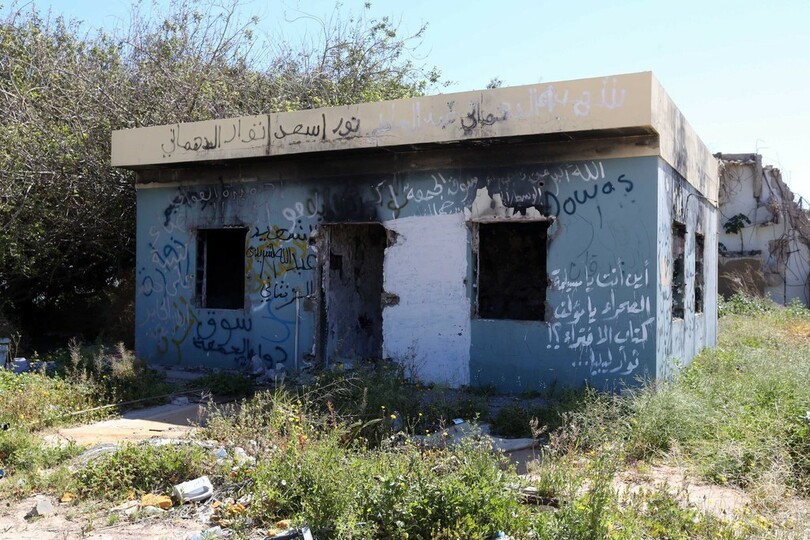 2011年の政変で政権が転覆するまで、カダフィ大佐は40年以上にわたってこの広大な敷地に立つ邸宅で暮らしていた。現在では荒廃し、ゴミ捨て場やペット市場として利用されている。(c)AFP