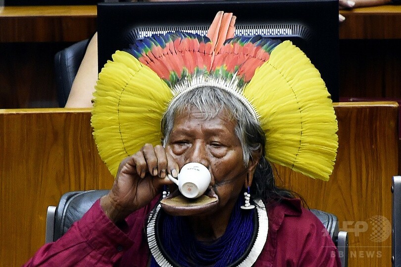 【4月18日 AFP】ブラジルの首都ブラジリア(Brasilia)の同国議会で16日、先住民たちが権利を要求する「ナショナル・モビライゼーション・ウイーク(National Mobilization Week)」の一環として先住民をたたえる会議が開かれ、多くの先住民が参加した。(c)AFP