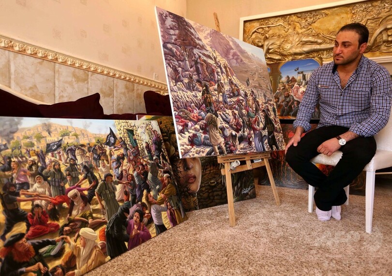 ISのヤジディー教徒虐殺を描くイラク人画家