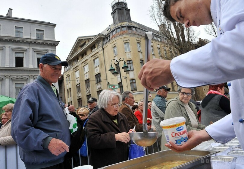 【4月18日 AFP】ボスニア・ヘルツェゴビナの首都サラエボ(Sarajevo)で17日、十数人のシェフと数十人のボランティアたちが、夜明けから8時間かけて約1万5000人分、4124キロ相当のシチューを作った。鶏肉1000キロ、ニンジン150キロ、セロリ50キロ、タマネギ約30キロ、オクラ15キロ、小麦粉100キロ、食用油100リットル、バター50キロを使用したという。