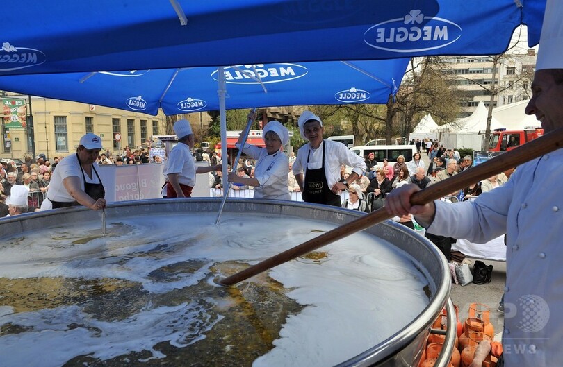 【4月18日 AFP】ボスニア・ヘルツェゴビナの首都サラエボ(Sarajevo)で17日、十数人のシェフと数十人のボランティアたちが、夜明けから8時間かけて約1万5000人分、4124キロ相当のシチューを作った。鶏肉1000キロ、ニンジン150キロ、セロリ50キロ、タマネギ約30キロ、オクラ15キロ、小麦粉100キロ、食用油100リットル、バター50キロを使用したという。