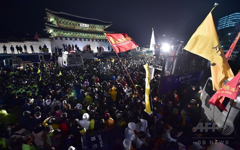 セウォル号沈没事故の遺族がデモ、警官隊と衝突 韓国・ソウル