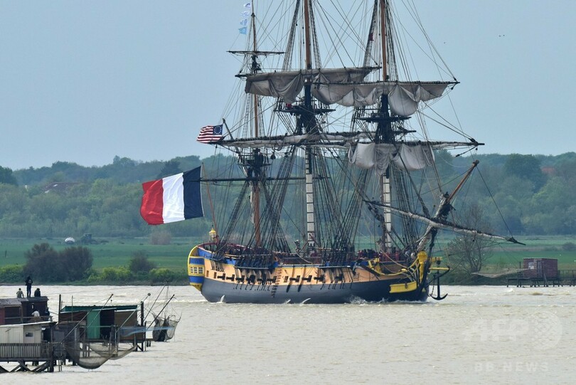 3本のマストを持つ全長65メートルの復元船は、船員約80人とともに大西洋横断を目指し、6月5日にはバージニア(Virginia)州ヨークタウン(Yorktown)に入港する予定。ヨークタウンは1781年の戦いで、ジョージ・ワシントン(George Washington)率いる部隊にラファイエットが加わり、英国軍に対して決定的な勝利を収めた場所だ。