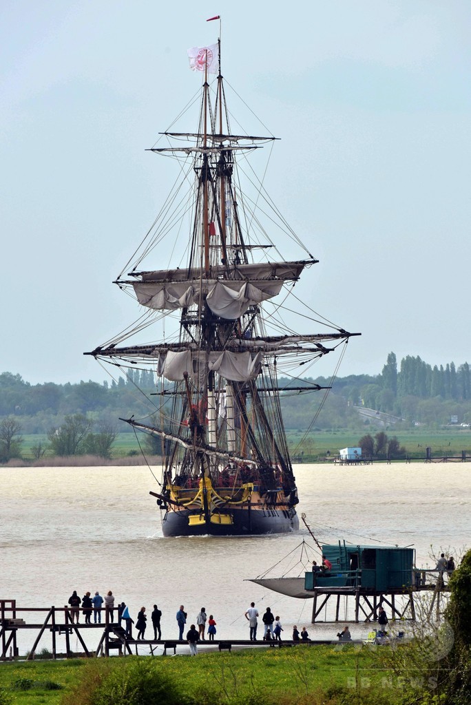 【4月20日 AFP】大西洋を横断した仏軍人ラファイエット(La Fayette)を乗せた当時の帆船のレプリカが18日、仏南西部にあるエクス島(Ile d'Aix)の港から米東海岸に向けて出航した。雨のなかの出航式は、フランソワ・オランド(Francois Hollande)大統領など数千人が見守るなかで行われた。