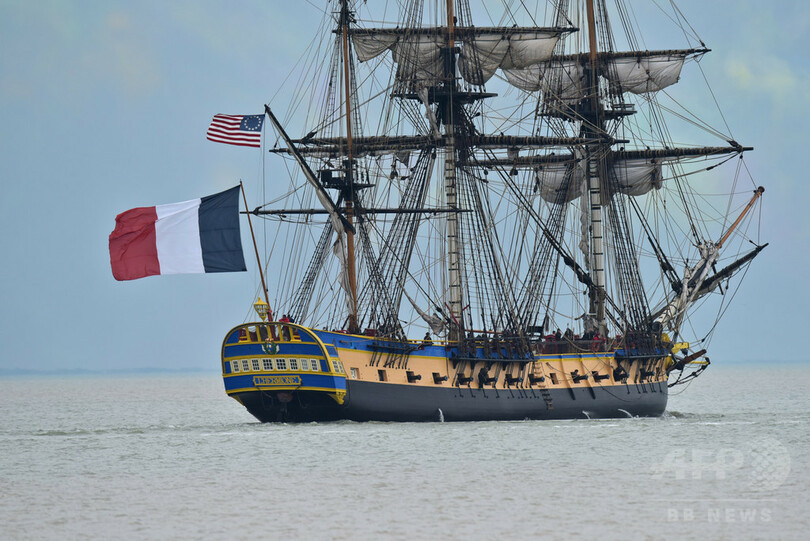 3本のマストを持つ全長65メートルの復元船は、船員約80人とともに大西洋横断を目指し、6月5日にはバージニア(Virginia)州ヨークタウン(Yorktown)に入港する予定。ヨークタウンは1781年の戦いで、ジョージ・ワシントン(George Washington)率いる部隊にラファイエットが加わり、英国軍に対して決定的な勝利を収めた場所だ。