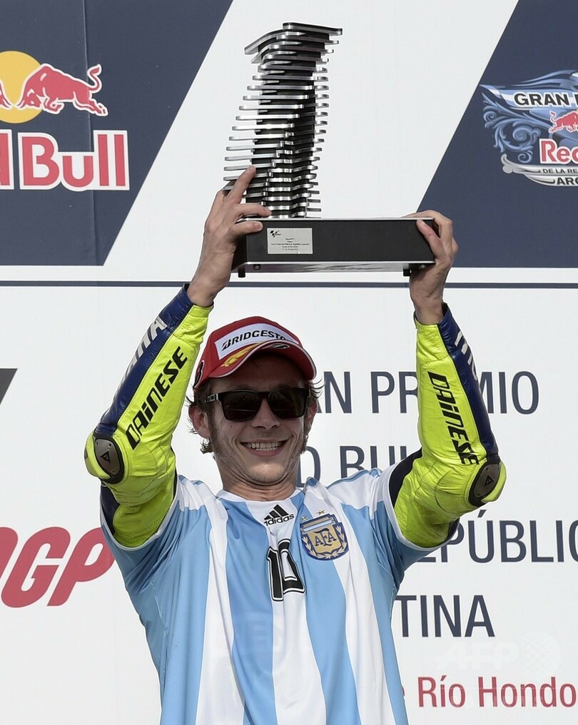 【4月20日 AFP】世界ロードレース選手権(WGP 2015)第3戦のアルゼンチンGPは19日、アルゼンチン・サンティアゴデルエステロ(Santiago del Estero)のテルマスデリオオンド・サーキット(Termas de Rio Hondo circuit)でMotoGPクラス決勝が行われ、モビスター・ヤマハ(Movistar Yamaha)のバレンティーノ・ロッシ(Valentino Rossi、イタリア)が優勝した。