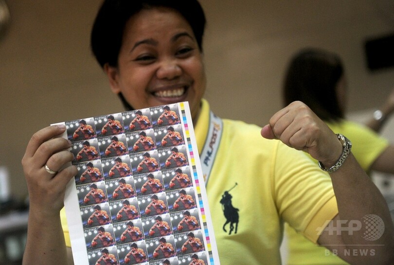 政府機関もまた、パックマニアの熱狂に押し流されており、郵便局では今週、リングで戦うパッキャオの写真が印刷された記念切手を50万枚売り出す予定となっている。(c)AFP