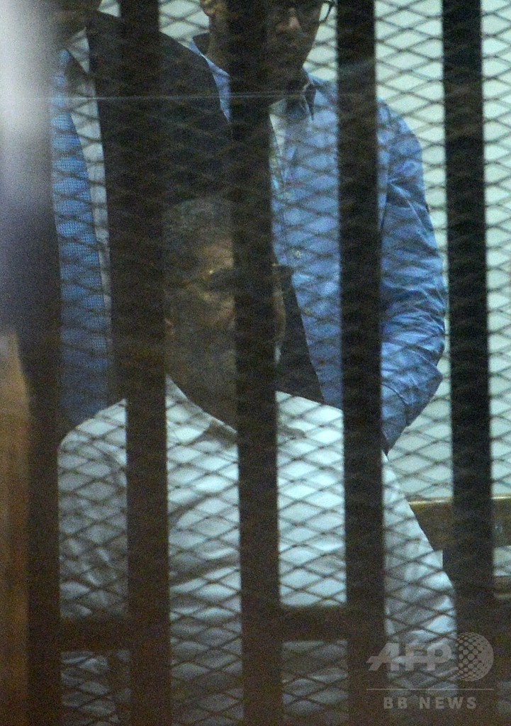 モルシ元大統領は、同じく12年に大統領府前で起きた衝突でジャーナリスト1人、デモの参加者2人が死亡したことをめぐり殺人罪にも問われ、有罪となれば死刑判決が下される可能性もあったが、これについては無罪となった。(c)AFP