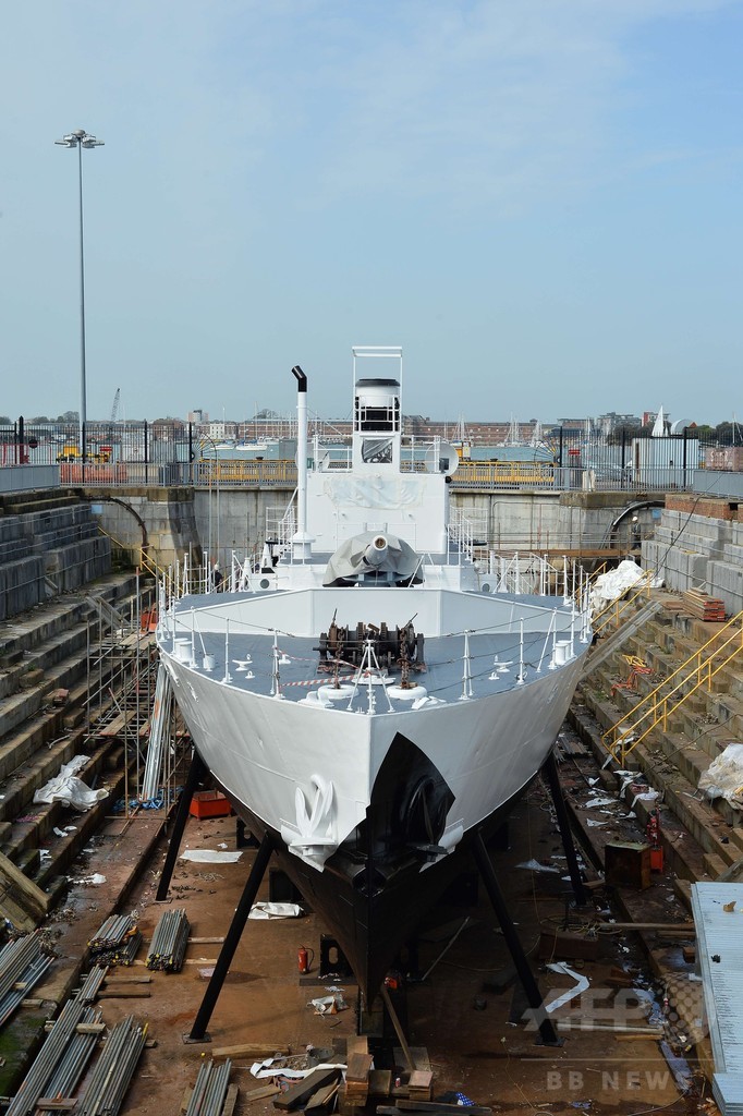 【4月24日 AFP】英国海軍(Royal Navy)が基地を置く英南部ポーツマス(Portsmouth)で、第1次世界大戦(World War I)の「ガリポリ(Gallipoli)の戦い」で活躍した軍艦「HMS M33 ミナーバ(HMS M33 Minerva)」の修復作業が行われている。