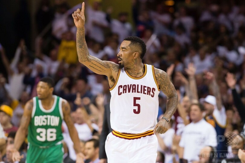 試合終了まで3分半の場面で再び点差が4に縮まり、接戦になるかに見えた試合だが、最後はジェームズが連続でシュートを成功させ、キャバリアーズが逃げ切った。(c)AFP