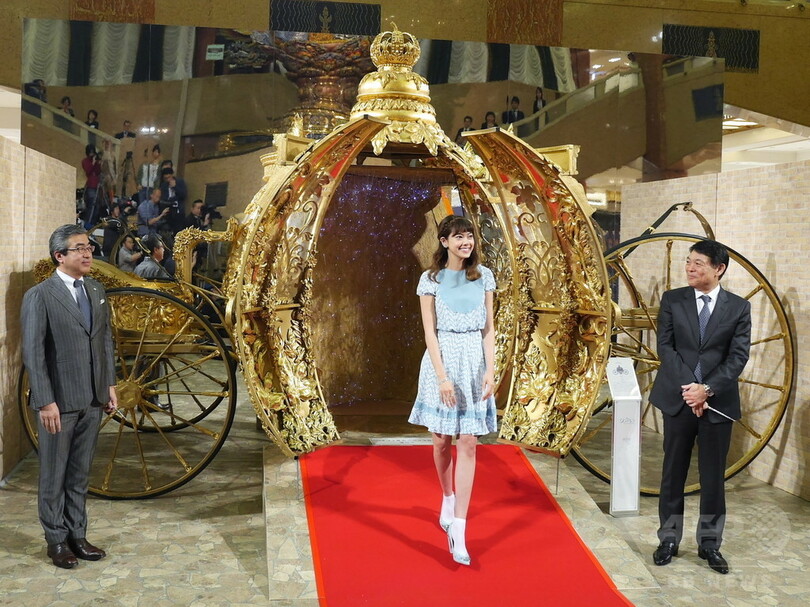 同店のエキシビションの目玉である魔法の馬車のセットから登場した森は、「本当に素敵ですね。映画の中のシーンが蘇ったような感じです」とコメント。また25日から公開される映画について、「王子様とシンデレラの愛はもちろん、親子愛など色々な愛が描かれているので、見た後にとても幸せな気持ちになります。また今回会場でも展示されていますが、衣装が本当に素敵でした。小さい頃から洋服が大好きで、思わず画面に食いついてしまうような素敵な衣装がたくさんありました」と話した。