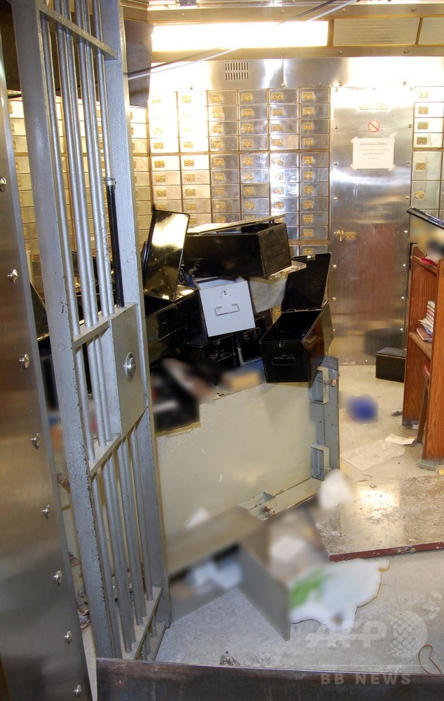 犯人らは厚さ50センチほどのコンクリートの壁に穴を開けて貸金庫に侵入、およそ70個の金庫からダイヤモンドなどの宝石を盗み出した。被害額は過去最大規模と伝えられている。(c)AFP