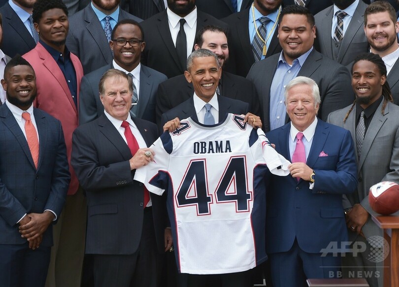 【4月24日 AFP】NFL第49回スーパーボウル(Super Bowl XLIX)覇者のニューイングランド・ペイトリオッツ(New England Patriots)が23日、米ホワイトハウス(White House)を表敬訪問し、バラク・オバマ(Barack Obama)大統領からボールの「空気圧不足」疑惑についてからかわれるなど、辛らつな歓迎を受けた。