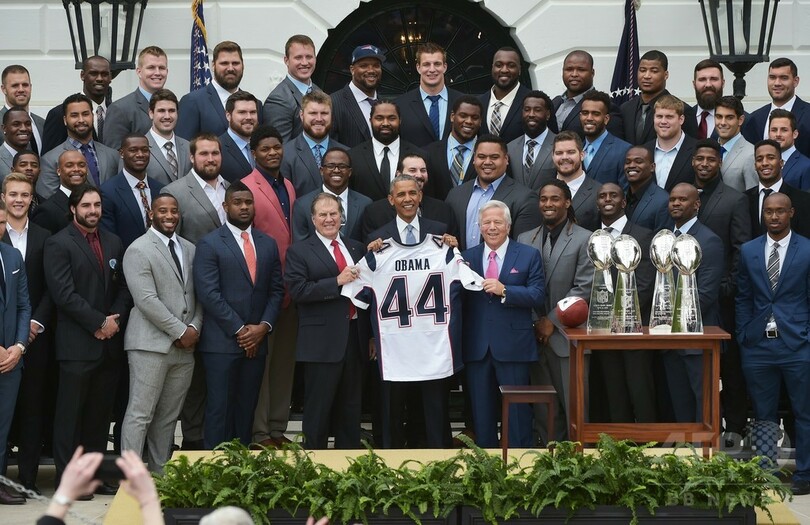 【4月24日 AFP】NFL第49回スーパーボウル(Super Bowl XLIX)覇者のニューイングランド・ペイトリオッツ(New England Patriots)が23日、米ホワイトハウス(White House)を表敬訪問し、バラク・オバマ(Barack Obama)大統領からボールの「空気圧不足」疑惑についてからかわれるなど、辛らつな歓迎を受けた。