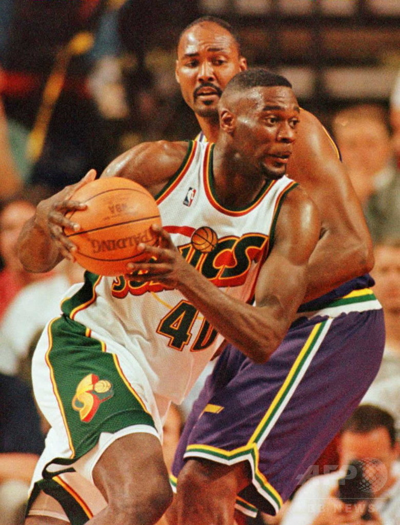スポーツ バスケットボール 写真特集 【特集】1990年代のNBAをAFPの写真で振り返る 2015年5月3日 10:00 発信地:その他 [ 米国 北米 ] このニュースをシェア ‹ › ❮ 29/48 ❯ Seattle SuperSonics' Shawn Kemp (FRONT) goes to the basket past Karl Malone of the Utah Jazz 02 June during first half action of game seven of the Western Conference Finals at KeyArena in Seattle, WA. (c)AFP/Dan LAVINE 画像作成中 ! 【5月3日 AFPBB News】1990年代のNBAで活躍した選手をAFPの写真で振り返る。(c)AFPBB News バスケットボール 一覧へ> メディア・報道関係・法人の方向け 写真・動画 購入のお問合せ>
