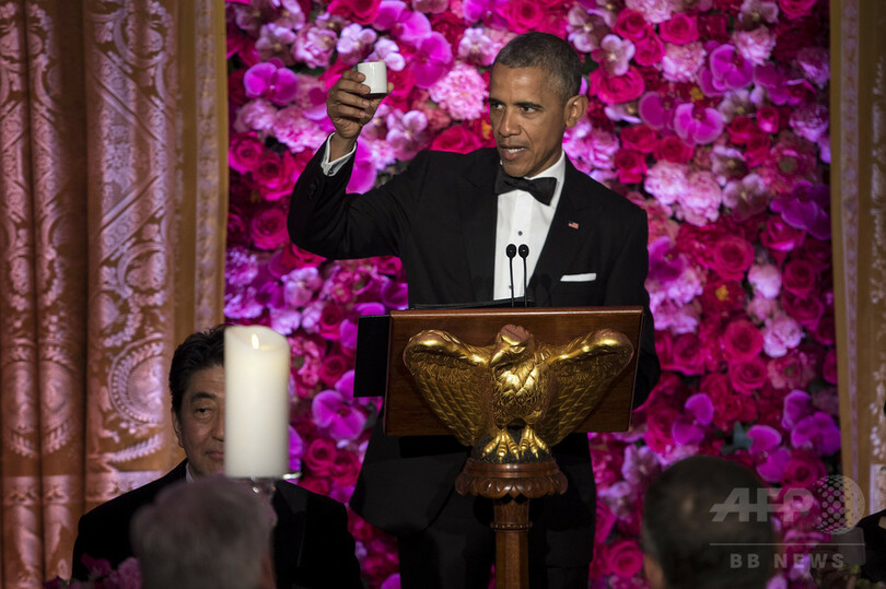 ホワイトハウス公式夕食会、安倍首相がジョークで笑わす