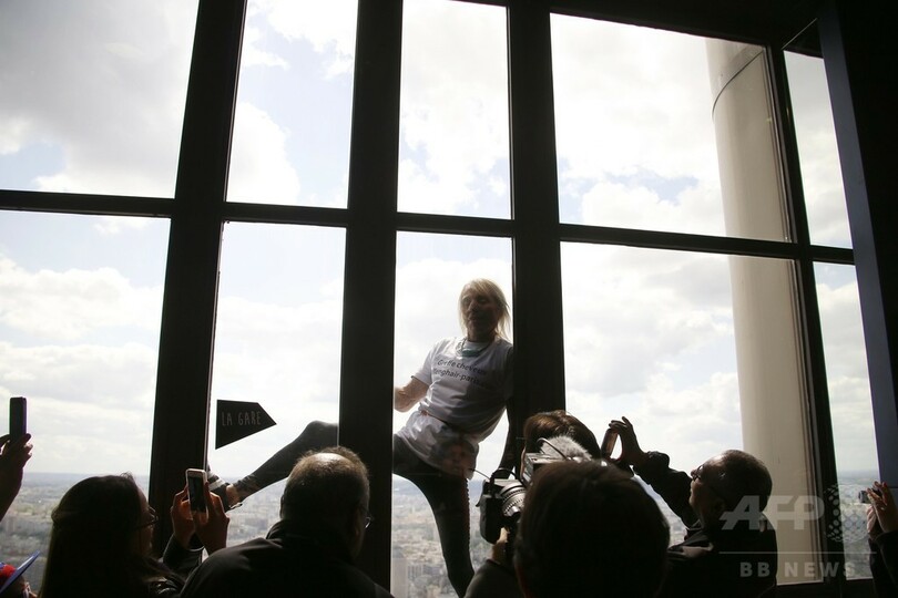 【4月29日 AFP】世界各地の高層ビルをよじ登り「スパイダーマン(Spiderman)」の異名を持つフランス人フリークライマーのアラン・ロベール(Alain Robert)さんが28日、パリ(Paris)にある高さ210メートルのモンパルナス・タワー(Montparnasse Tower)に現れた。ネパールで起きた地震の犠牲者に捧げる行動とみられ、手にはネパールの国旗が握られていた。(c)AFP