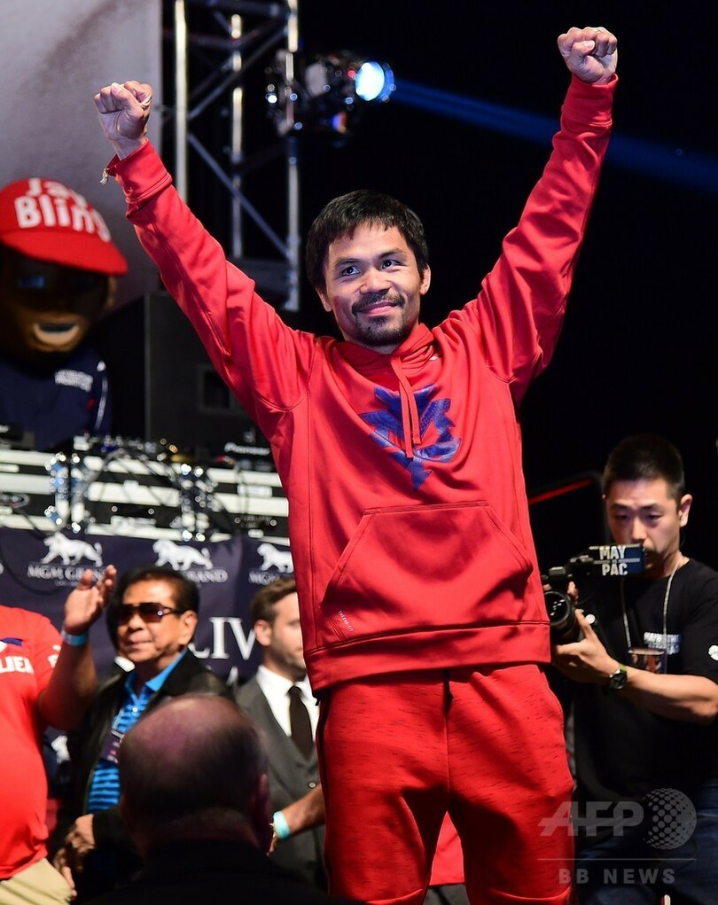 一方、パッキャオは5年以上かかった世紀の一戦が実現したことに対し、メイウェザーに感謝を示しつつ、「すべてのファンにこの試合を見る資格がある」とコメントした。(c)AFP