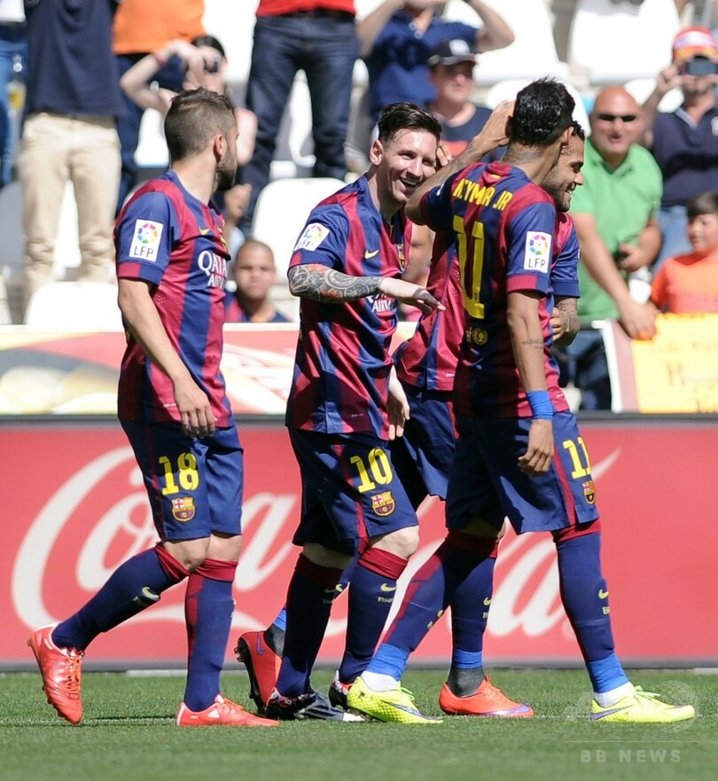 レアル・マドリード(Real Madrid)のクリスティアーノ・ロナウド(Cristiano Ronaldo)とリーグ得点王を争っているメッシは、後半35分に流し込むだけの簡単なシュートを決めてリーグ40得点目に到達すると、その後に得たPKのチャンスをネイマール(Neymar da Silva Santos Junior)に譲った。